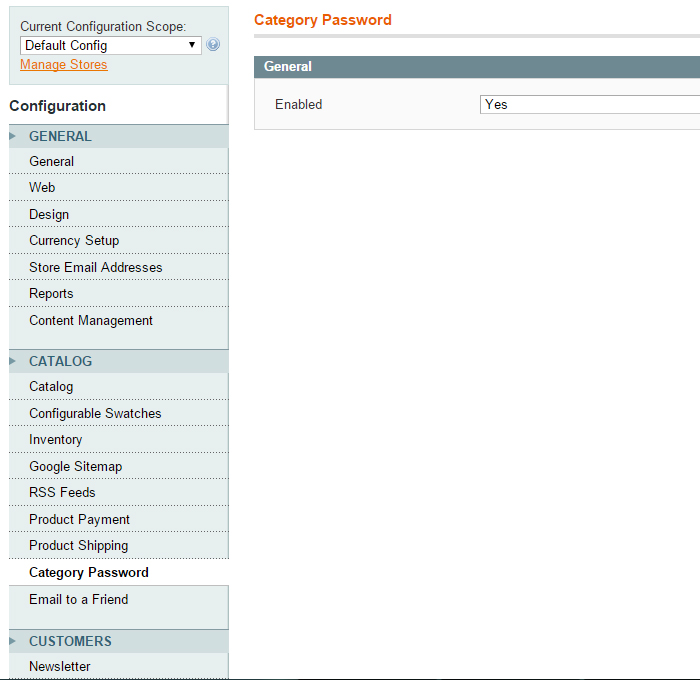 -Enable ‘Category Password’ in admin->system->configuration->catalog