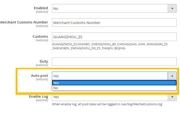 The extension integrates the official WeChat Customs API. After installing it and enabling the auto-post option on the module, all the transactions using WeChat Pay will be sent to the customs automatically after the payment is complete. Also, it allows adding or modifying the data manually to ensure it is submitted correctly. You can check the submission status that the customs return in real-time. If it returns failure, you can check the error info and submit it again.