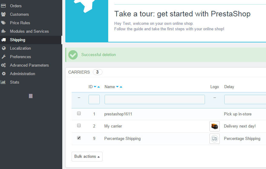 -Install "Percentage Shipping Carrier" module on the module management page.